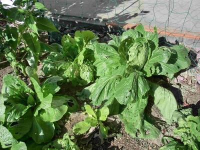 青空が広がっています。校庭を一回りしてきました。木々は「紅葉」から「落葉」へ。秋は短いですね。環境美化会員さんが、刈払機で芝を剥がしてくれています。私が腰が痛くて、しばらく作業ができないため、代わりにやっていただき本当に助かります!しろやま農園の野菜たちはすくすくと育っています。