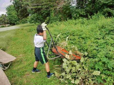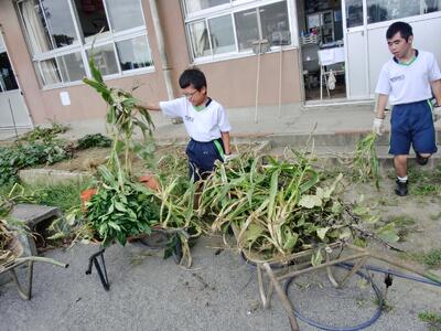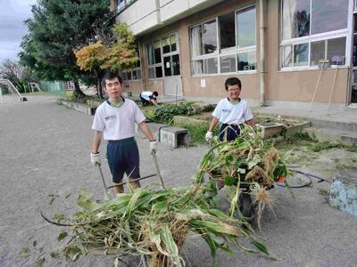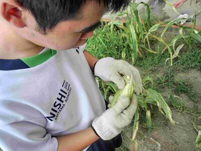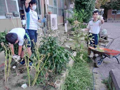 夏野菜の収穫が全て終わり、撤去作業をしました。たくさんの実をつけてくれた野菜たちに感謝をしながらの処分です。心残りなのは「トウモロコシ」です。暑すぎたため、実が早くつきすぎてしまったようです。大きくならずに、食べることができませんでした。残念です。来年こそは!