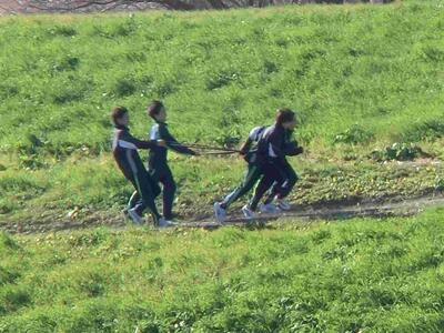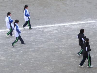 今日は冷たい風が強く吹いています。そんな中でも、部活動を頑張っています。男子テニス部は、近くの神社にお参り後練習を。サッカー部は練習試合。陸上部は土手に行き、向かい風の中、坂道トレーニング。冬休みも、残すところ明日のみとなってしまいましたね。