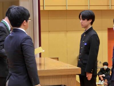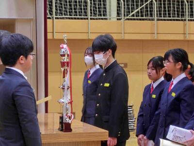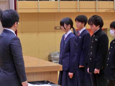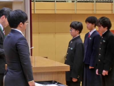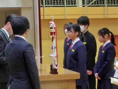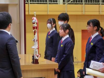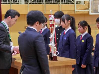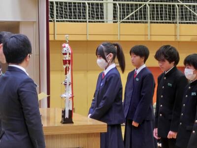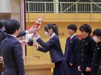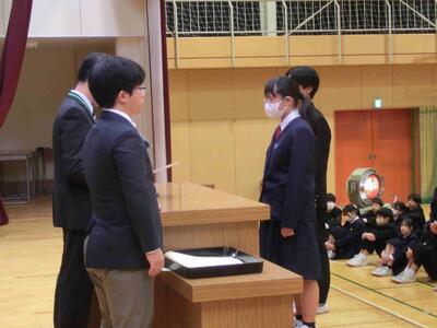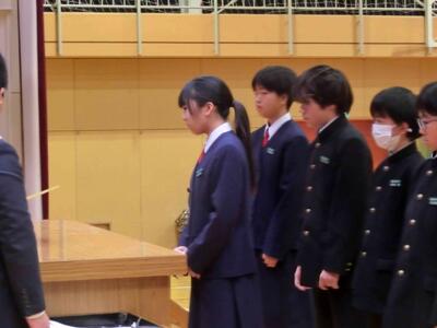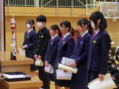 終業式に続き、表彰を行いました。人数が大変多いため、代表者の表彰となりましたが、それでも多くの人たちに賞状等が手渡されました。2学期、部活動等、好成績を収めました。おめでとうございます!