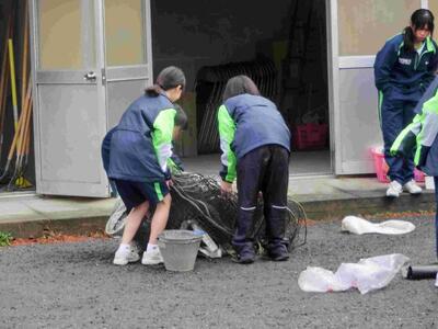 今日から冬休みに入りました。気持ちは、少しゆとりを持ちながらの生活になりますね。部活動は相変わらず頑張っています。サッカー部は試合を、ソフトテニス部男女は、コートが雨でぬかるんでいるため、男子は体育館で、女子は部室の掃除をしていました。