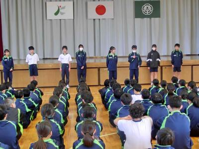 2学期終業式を、体育館で全校揃って行いました。本校はリモートでの式が多いため、久しぶりです。やっぱり全員で体育館で行うのが、気持ち的にはいいですね。この後学活にて通知表を受け取ります。しっかりと向き合ってください。