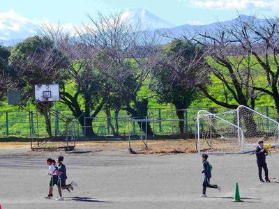 今日は風が冷たいです。でも、負けないでみんな本当によく頑張っています、2年生体育「長距離走」。2Fから撮影をしたのですが、ちょうど富士山をバックに走っているようでした。長距離走の授業も、あと少し。ガンバレ!!
