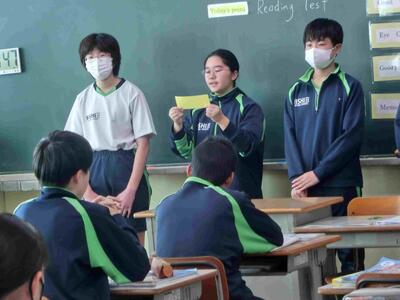 2時間目の授業を見て回りました。2年生英語は、リーディングテスト?をしていました。自信がないと声が小さくなる・・・?しろやま学級は技術家庭科。刺繍とランタンづくりに励んでいました。校庭では1年生体育、長距離走を頑張っています!
