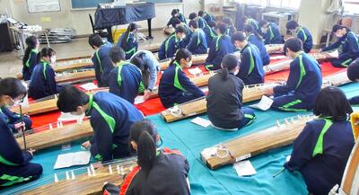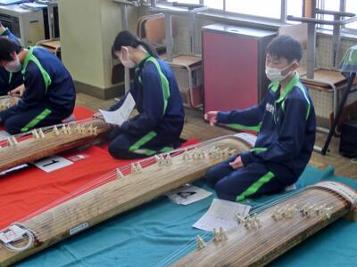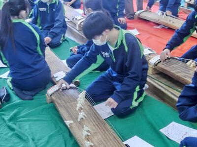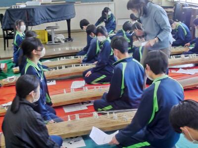 2年生が、3組以外久しぶりの登校です。クラスによっては、かなり欠けているところもありますが、感染に差があるのでそれも仕方のないところ。さっそく音楽の授業では、中断していたお琴の「さくら さくら」。この音色も、久しぶりに聞くことができとっても良かったです。