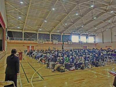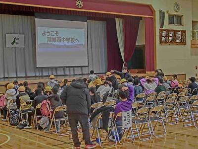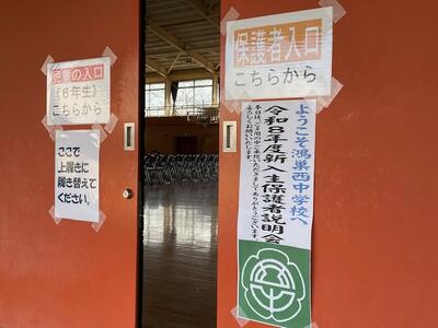 令和8年度新入生保護者説明会を、6年生児童、保護者の皆様ご参加の下開催しました。本校のインフルエンザ蔓延により、予定していた2年生のウエルカム合唱の披露や、部活動見学が中止となってしまいましたが、PowerPointを用いた学校の紹介や、生活の決まり、入学までの準備について説明をしました。途中、生徒会役員誘導で校内巡りを行って、鴻巣西中学校を感じてもらいました。引率いただいた小学校の先生、また会長様はじめ、PTAの役員様には、受付、駐輪場の案内、制服リサイクル、役員決め等、ご協力いただきました。ありがとうございました。