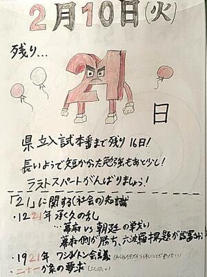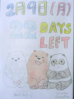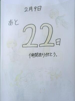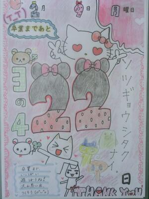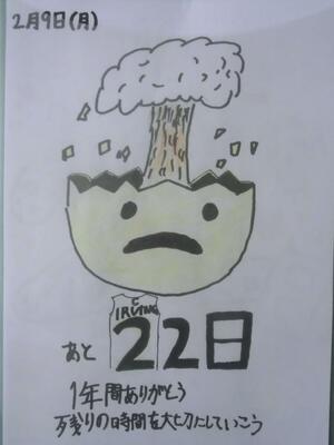 今日の3年生卒業までのカウントダウンカレンダーです。卒業まであと「22」日!