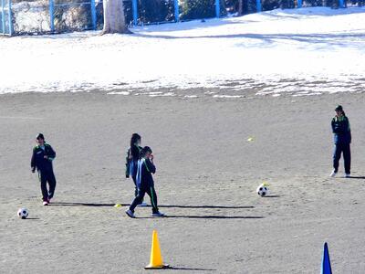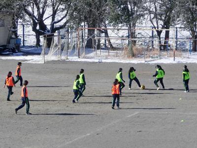 学級閉鎖の1年4組、2年3組が復帰となり、これで全クラスが久しぶりに揃いました。残念ながら閉鎖中にインフルエンザ罹患が確認された人、体調が戻らず長引いている人は数名いますが、活動再開です!2年3組は、4組とともに雪の残る校庭で、元気にサッカーを楽しみました。