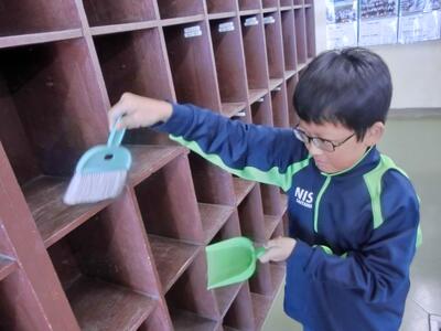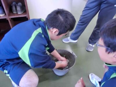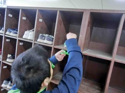 しろやま学級「作業」の時間、今日は下駄箱の大掃除をしました。靴を全て取り出し、ほこりを掃き出します。そして水拭き。水が冷たくて大変そうでしたが、無事終了。きれいになりました。ご苦労様!