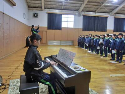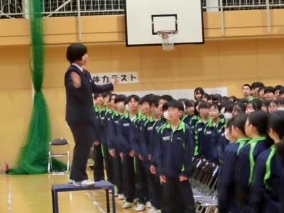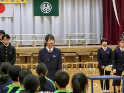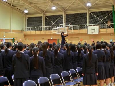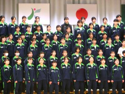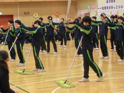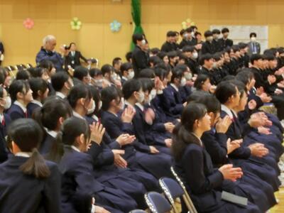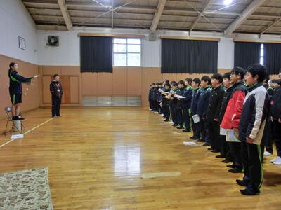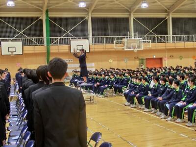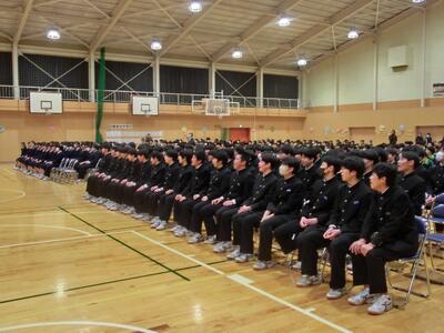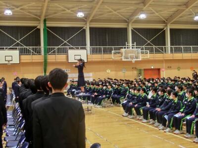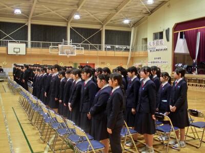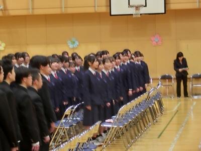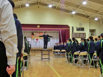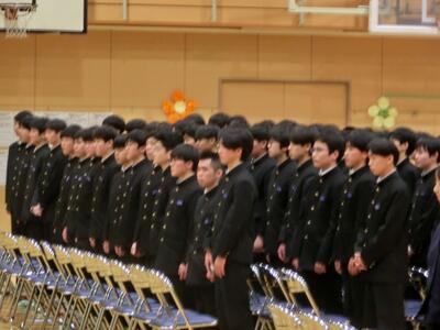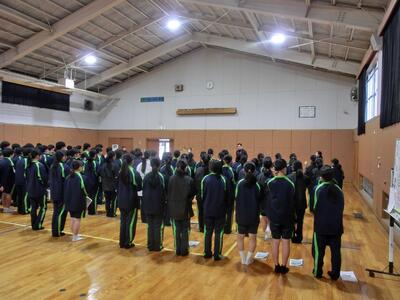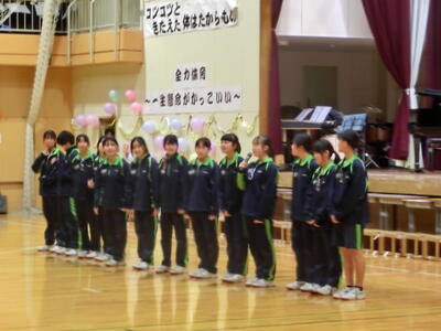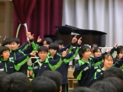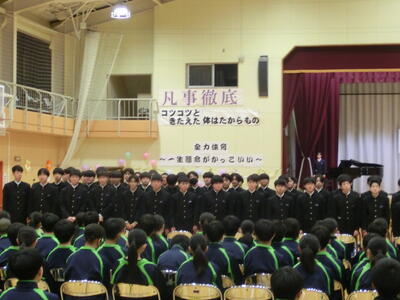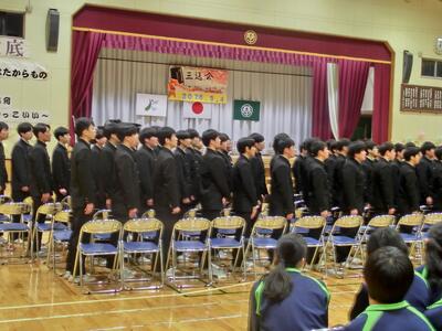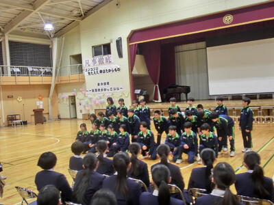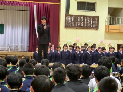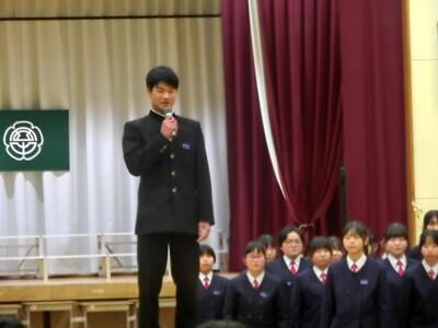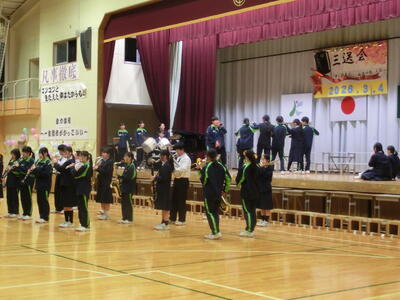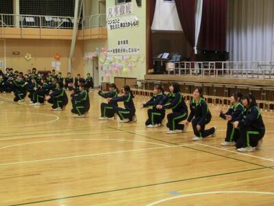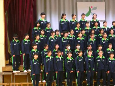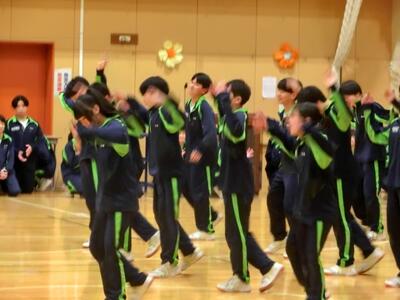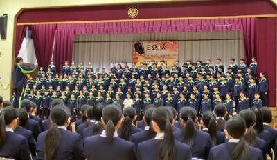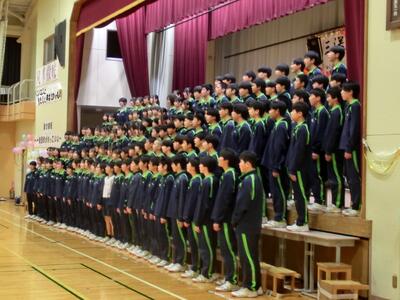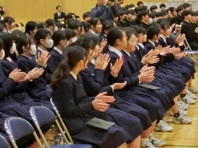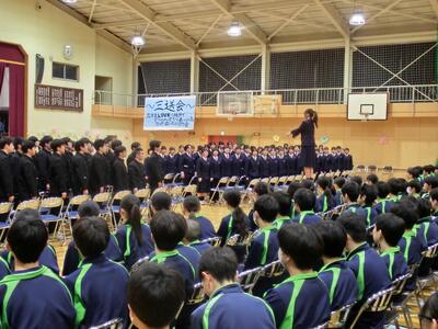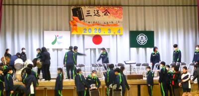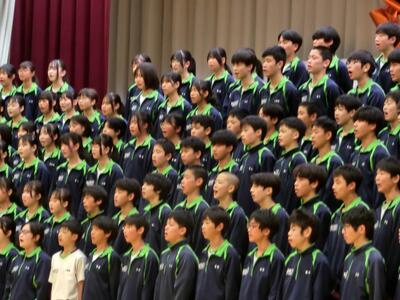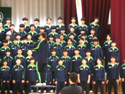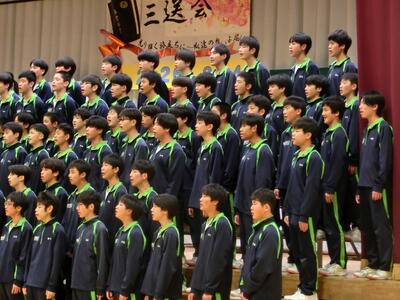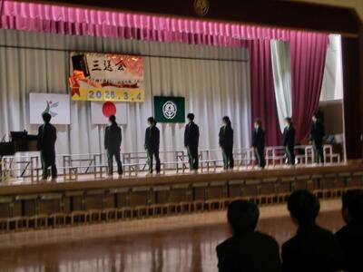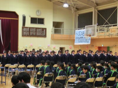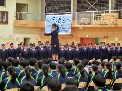 3年生から、1,2年生に向けて、盛大な三送会開催について感謝の言葉、そして心を込めた合唱で気持ちを伝えました。やっぱり最高学年としての、威厳のある歌声でした。1,2年生の目標ですね。