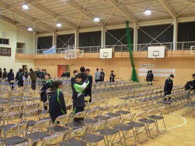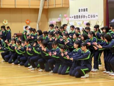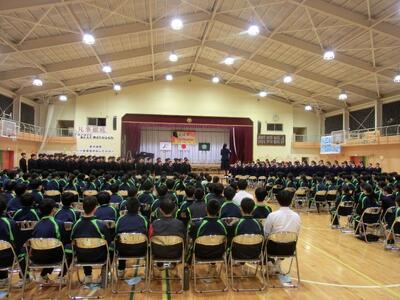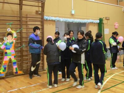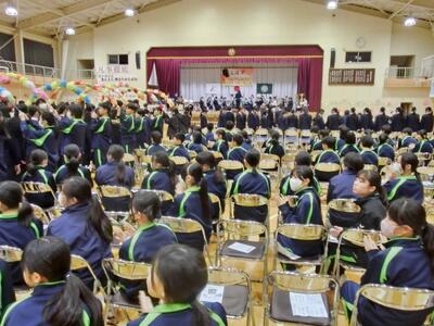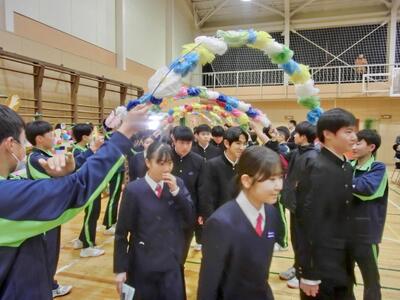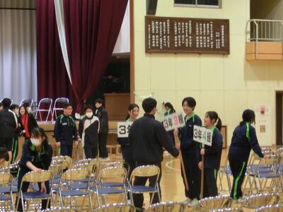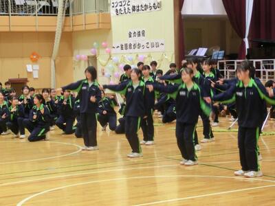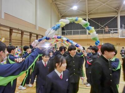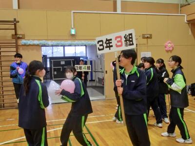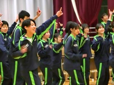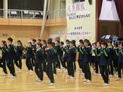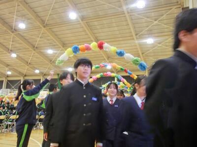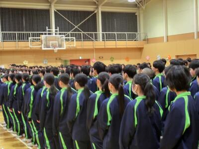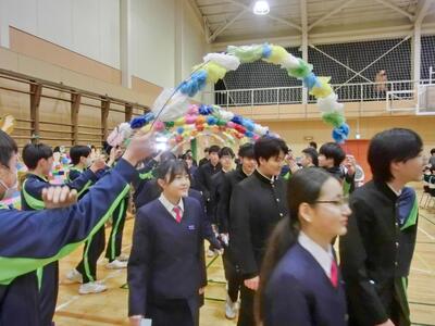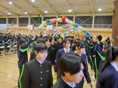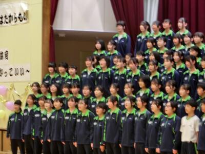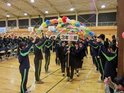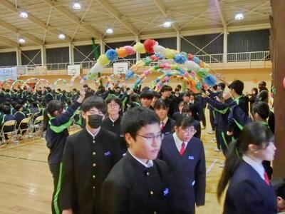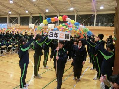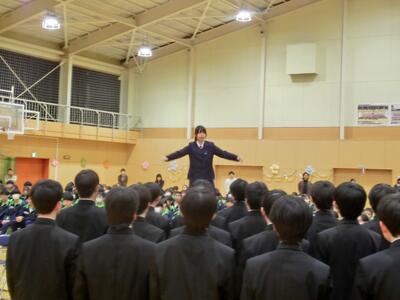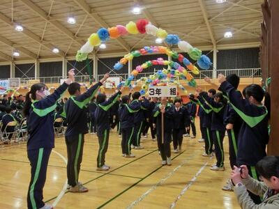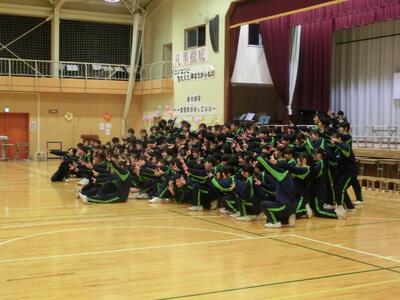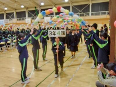 盛り上がった会も、いよいよ終わりとなりました。最後は全校で「つぼみが開くように」の大合唱。鴻巣西中学校の歌は、他校に誇れるものの一つです。気持ちの入った全校合唱は、とっても素晴らしいです。気持ち良くエンディングを迎え、3年生が退場をしていきました。