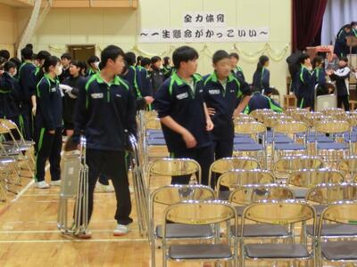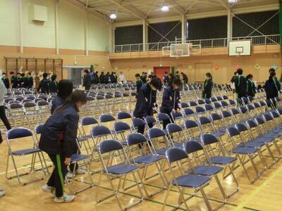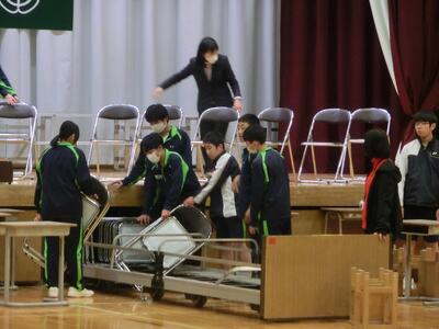 明日の三送会に向けて、1,2年生総動員で会場準備を行っています。椅子や周りの飾りつけなど、限られた時間の中で手際よく進めていました。並行してリハーサルも入念に。3年生のみなさん、明日の本番を楽しみにしていてくださいね!