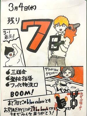 明日行われる「三送会」。3年生のために、1,2年生は時間を捻出しながら計画的に準備を進めてきました。楽しい思い出と共に卒業をしてもらいたいという後輩たちの気持ちを、3年生はしっかりと受け止めて、明日を迎えてほしいです。何をやるのかは、このブログでもUPは控えてきました。当日のお楽しみです!