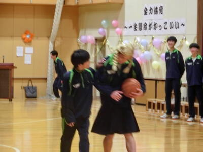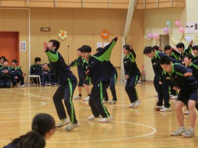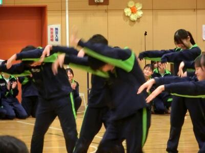 2年生の企画です。リズムに合わせた爽快なダンスを繰り広げます。何曲も何パターンも踊りきりました。少ない練習期間で、よくここまで仕上げましたね。素晴らしい!!何よりも、自分たちが楽しみながら踊っていることが一番です。3年生も、自然と手拍子が出ていました。最後は合唱。合唱祭の時もすごかったけれど、遙か上です。見事でしたね。2年生として会を盛り上げる責任を、しっかりと果たしました!