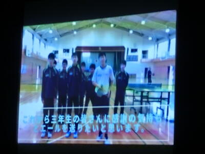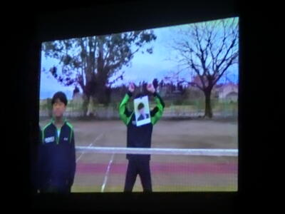 1年生企画です。1年生は、誰が何先輩役というように、全員が3年生に扮して、エピソードを撮影し、動画にて放映しました。全員の合唱は、一生懸命さが伝わってきました。初めて経験する三送会、来年は2年生として作り上げて欲しいです。