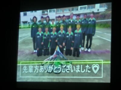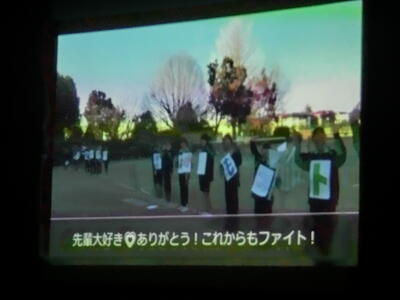 部長会企画です。各部が先輩への感謝のメッセージを、動画や実演にて伝えました。思い出を振り返る寸劇を入れながら工夫を凝らしていました。残念ながら、動画については画像では伝えるのが難しいです。何となく雰囲気を感じてください。