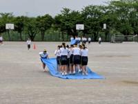※写真は、2年生の学年種目「空飛ぶ魔法のじゅうたん」の練習風景