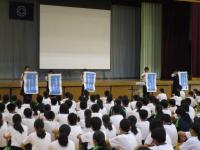 また、県大会へ出場する部活の皆さんへ西中応援団(各部の部長)からエールが送られました。(写真右)
