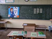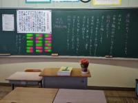 始業式の朝、各教室で担任の先生が黒板メッセ―ジを書いて生徒を待っていました。