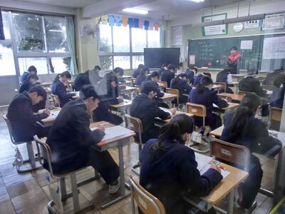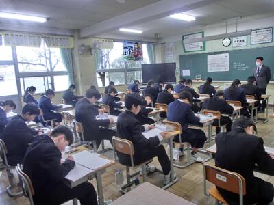 いよいよ明日は県公立高校入試です。本来ならば、集会を開いて事前の説明を丁寧に行い、顔を見て「頑張ってね!」と送り出すところですが、残念ながらモニター越しになってしまいました。とにかく、体調を整えて、忘れ物をしないように、そして持てる力を発揮してきてください!がんばれ3年生!!