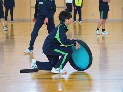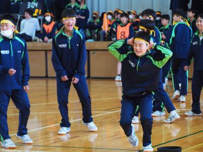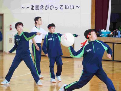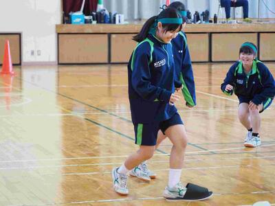 1年生が学年レクを行いました。今年度最後の思い出づくりですね。「スリッパリレー」と「ドッジボビー」(ドッジボールとドッジビーを合わせたもの)でたくさん動いて、たくさん笑って、最後にふさわしい楽しい2時間を過ごしました。担任の先生たちも、一緒になって楽しんでいましたね。