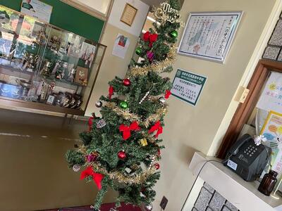 12月になりましたので、毎年恒例の「大きなクリスマスツリー」が職員玄関に登場しました。クリスマスを励みに、残りの2学期を乗り切りましょう!頑張りましょう!