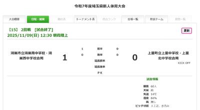 サッカー部 新人兼県民総合スポーツ大会県大会 見事勝利! 投稿: 鴻巣西中学校 (05:32) 9日(日)、サッカー部が、埼玉県新人体育大会兼県民総合スポーツ大会の初戦に臨みました。本校は2回戦からのスタート。対戦相手は上里中・上里北中合同チーム。1-0で見事勝利を収めました。おめでとうございます! Tweet -