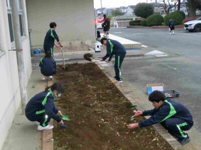 11月13日(木)夏の暑さに耐えた花を処分 投稿: 鴻巣西中学校 (16:34) 来週行われる「花いっぱい運動」のため、夏の暑さに耐えた花たちを、美化委員会のみんなで処分しました。放課後薄暗くなった中、手際よく作業し、きれいに整地できました。ご苦労様でした。また、きれいな花を植えましょう! Tweet -