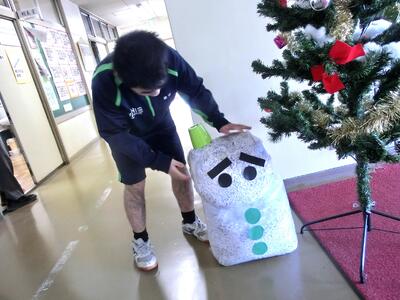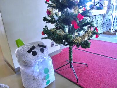 12月15日(月)雪だるまが登場 投稿: 鴻巣西中学校 (12/15) 職員玄関の大きなツリーの横に、雪だるまが登場しました。毎年ツリーに綿の雪が降ると登場する雪だるま(シュレッターの紙)。良い利用法でしょ! Tweet -
