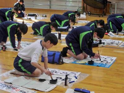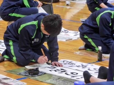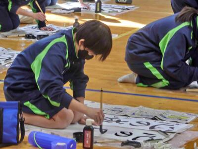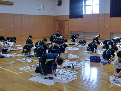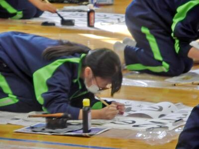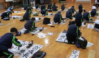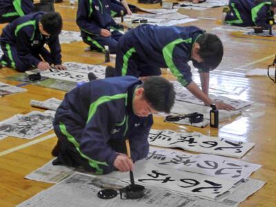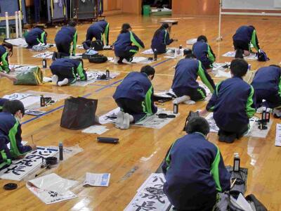 12月16日(火)1年生書きぞめ 武道場にて 投稿: 鴻巣西中学校 (12:19) 武道場で、1年生国語の授業「書きぞめ」を行っていました。シ~ンと静まりかえった道場で、黙々と筆を走らせていました。もう何回目でしょうか?納得のいく作品はできたでしょうか? Tweet -