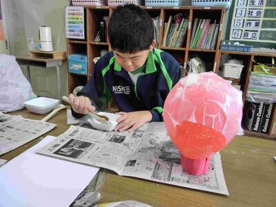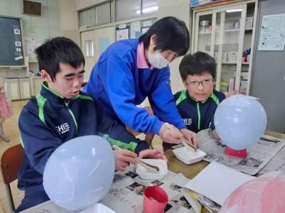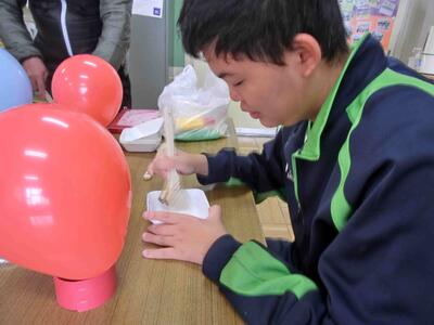 12月19日(金)風船張り子の「だるま」づくり 投稿: 鴻巣西中学校 (16:13) しろやま学級、今日の作業の時間は「風船張り子のだるまづくり」です。まずは、風船を膨らませることに一苦労。膨らんだと思って気を抜くと、勢いよく飛んで行ってしまいました。半紙にのりをハケで塗り、貼り付けていきます。とりあえず、形になってきました。続きは3学期に。見事なだるまをつくるぞー!! Tweet -