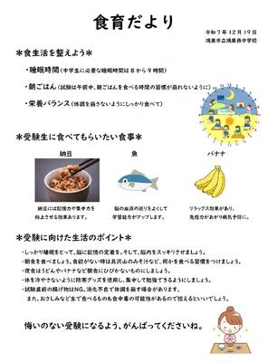 本日3年生向けに、栄養教諭より「食育だより」が配られました。受験生必見です!!本校だけでなく、広く受験生のみなさんに紹介しますので、見てくださいね!