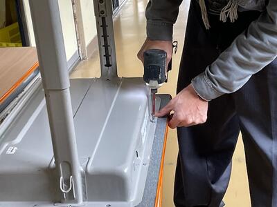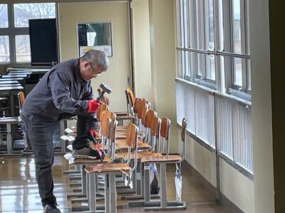 12月25日(木)ありがとうございます! 机の天板・椅子の背板、座面の張替 投稿: 鴻巣西中学校 (13:29) 25日(木)、26日(金)の2日間で、机の天板と、椅子の背板、座面の張替作業を業者の方に行っていただいています。ありがとうございます。市の予算の関係で、痛みが大きい物のみの限られた対応になってしまいますが、これで、天板に穴が空いていたり、座るとささくれで服が引っかかったりすることはなくなりますね。 Tweet -
