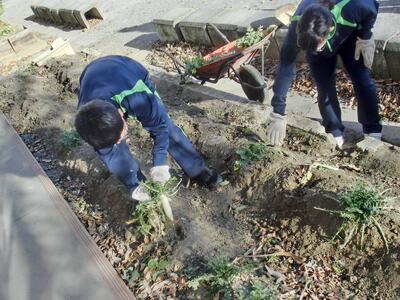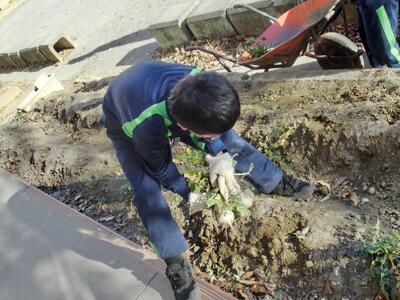1月22日(木)しろやま学級 今日の「作業」 投稿: 鴻巣西中学校 (16:19) 今日の作業の時間は、残っていた大根を全て収穫しました。2人での作業でしたが、小ぶりなので、軽~く抜けました。二股になっていて、どれも「セクシー大根」ばかりでしたが、自分たちでお世話をした大根。愛おしく思えますね。さぁ次はジャガイモを植えるぞ~!! Tweet -