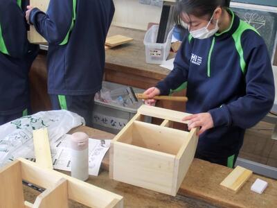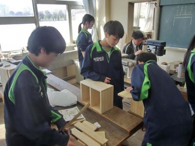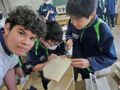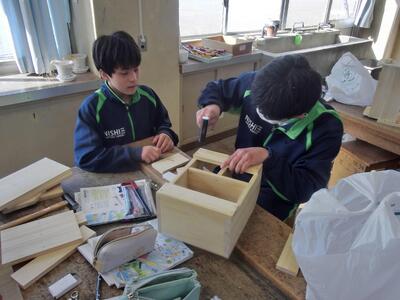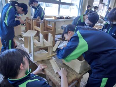 1月23日(金)形になってきました!1年生技術「木工制作」 投稿: 鴻巣西中学校 (13:26) 1年生技術の「木工制作」。見に行く度にどんどん形になってきています。ノコギリで切って、グラインダーや紙ヤスリできれいにし、いよいよ釘打ち。カナヅチの使い方がちょっと心配ですが、友達に抑えてもらいながら打ち付けました。もう完成している人もいますね。 Tweet -