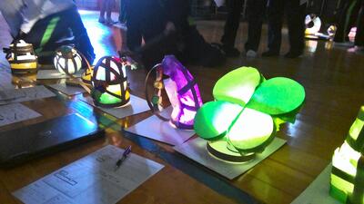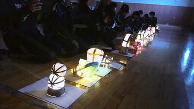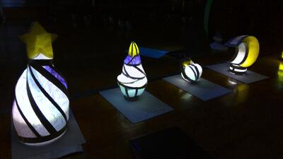 2月13日(金)幻想的!「ランプシェード点灯式」 2年生美術 投稿: 鴻巣西中学校 (13:24) 2年生美術の作品「ランプシェード」今日は完成を祝い点灯式を武道場にて行いました。暗幕を閉めて真っ暗闇のなか、幻想的に浮かび上がるランプシェード。形も様々、色とりどりの優しい灯りがとってもきれいですね。画像だけでも十分伝わると思います。 Tweet -