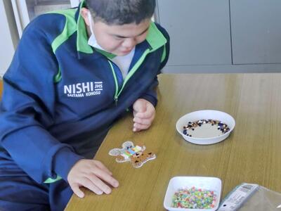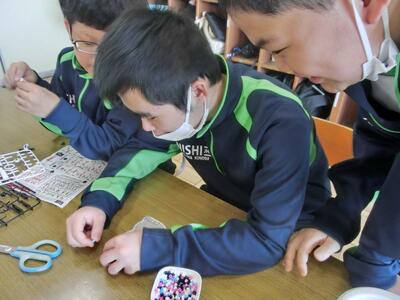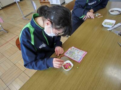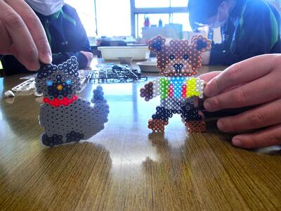 2月13日(金)アイロンビーズ完成! 投稿: 鴻巣西中学校 (06:24) しろやま学級作業の時間。前日から制作していたアイロンビーズが完成しました。細かい作業でしたが、粘り強く頑張りましたね。色を工夫したりと、オリジナルの作品になりました。今日からスタートした2人も、もう少しで完成です。とにかく、集中ですよ! Tweet -