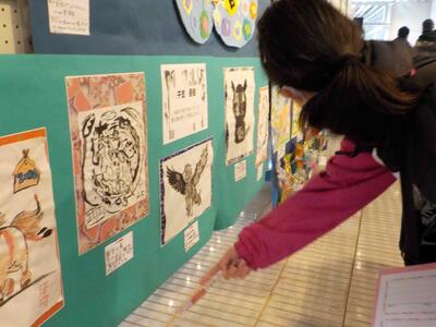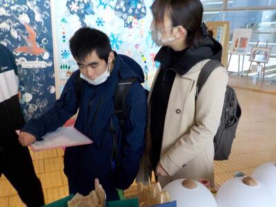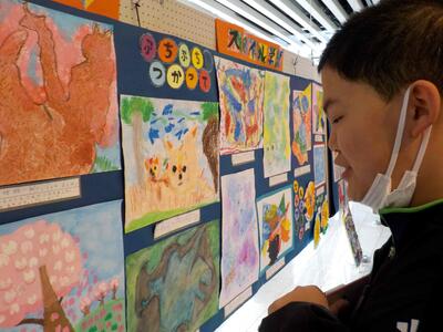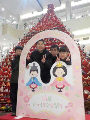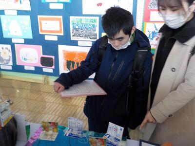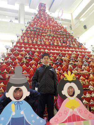 しろやま学級が校外学習に出かけてきました。鴻巣市文化センタークレアこうのすで行われている「なかよし作品展」の見学です。学校を出発して、路線バスを乗り継ぎながら現地へ。クレアこうのすでは、市内小中学校の児童・生徒の作品が展示されていて、じっくりと見学してきました。どれも力作ばかりでしたね。見学を終え、エルミ鴻巣でお買い物学習。各々好きなおやつを買って食べました。そびえ立つ鴻巣市名物ビックリひな人形と記念撮影。無事学校に戻ってきました。とても楽しかったようです。