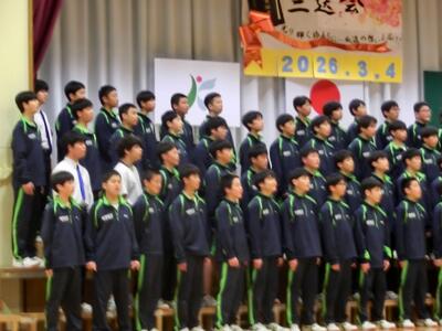 3月4日(水)涙と笑いの「三送会」!②1年生から3年生へ 投稿: 鴻巣西中学校 (13:32) 1年生企画です。1年生は、誰が何先輩役というように、全員が3年生に扮して、エピソードを撮影し、動画にて放映しました。全員の合唱は、一生懸命さが伝わってきました。初めて経験する三送会、来年は2年生として作り上げて欲しいです。 Tweet -
