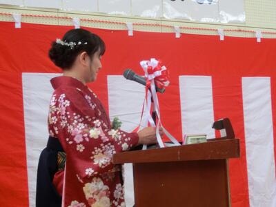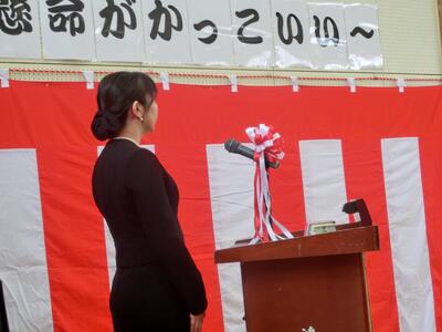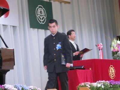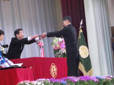 「卒業証書授与」担任の呼名に、ステージ上で堂々と返事をしました。緊張による多少のぎこちなさなんて気にすることはありません。真剣さが伝わればいいのです。校長先生からの「おめでとう」に笑顔で答えていましたね。立派に証書を受け取ることができました。