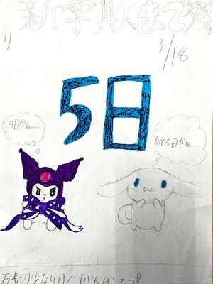 今日の1年生解散までのカウントダウンカレンダーです。解散まであと「5」日!