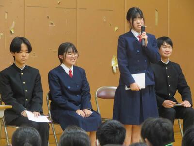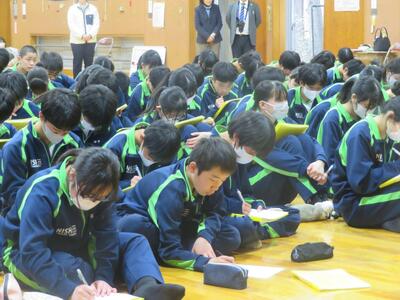 3月18日(水)「卒業生に学ぶ会」2年進路学習 投稿: 鴻巣西中学校 (16:23) 2年生が進路学習会として、「卒業生に学ぶ会」を行いました。1学年が保護者会を体育館で行っている関係で、武道場にて実施です。卒業生に時間を作ってもらい、自身の経験を後輩たちに伝えてもらう、貴重な機会。勉強方法や受験までの準備や気構えについて、実体験を基にしたお話をしてもらいました。来年の受験生としてのイメージが持てましたか? Tweet -