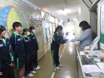 3月24日(火)栄養教諭の先生、配膳員さんありがとうございました! 投稿: 鴻巣西中学校 (17:26) 給食最終日ということで、毎日の給食の献立を考えていただいている栄養教諭の先生と、配膳の準備をしていただいている配膳員さんに、給食委員会がお礼のあいさつをしました。2年生の委員がメッセージと共に感謝の気持ちを伝えました。心温まる言葉に、栄養教諭の先生、配膳員さん、とっても喜んでいましたよ! Good Job! Tweet -