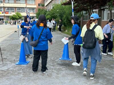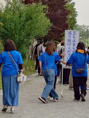 駐輪場への案内・整備、また、体育祭が円滑に進むようにテント前の整備や呼びかけをしました。